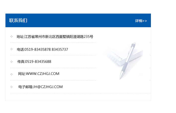 地址:常州市新北區友邦商務大廈1幢16、17層  電話:0519-85101652  傳真:0519-85112595  郵編:213022  網址:www.cz-jiayue_cn.china-bosh.com  郵箱:xiajifengaa@163.com